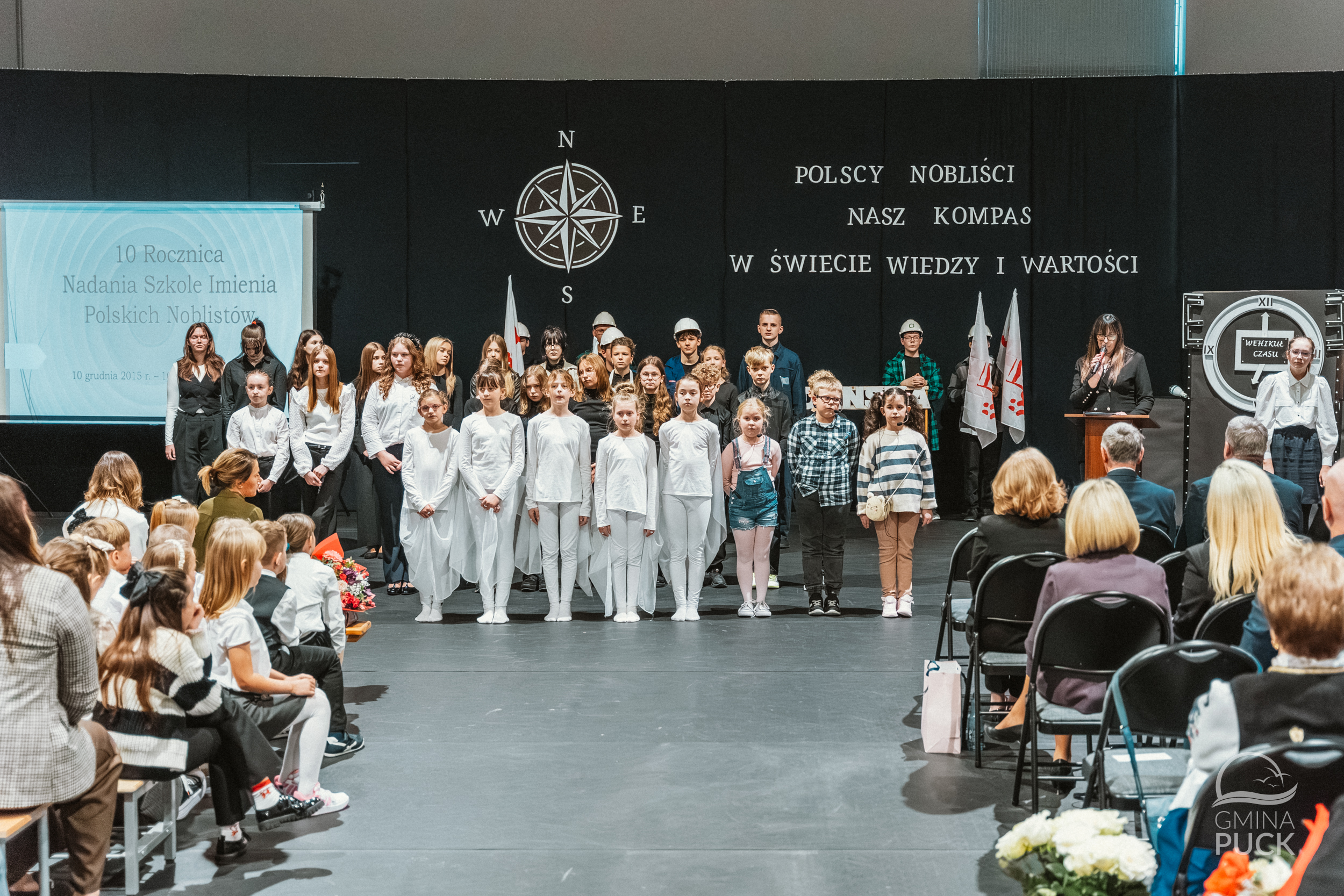 W środę, 10 grudnia, w Szkole Podstawowej w Łebczu odbyły się wyjątkowe uroczystości związane z 10-leciem nadania placówce imienia Polskich Noblistów. To ważne wydarzenie zgromadziło licznych gości – przedstawicieli lokalnych władz, dawnych i obecnych pracowników szkoły, uczniów, rodziców oraz przyjaciół, którzy od lat wspierają rozwój tej ważnej dla społeczności lokalnej instytucji.