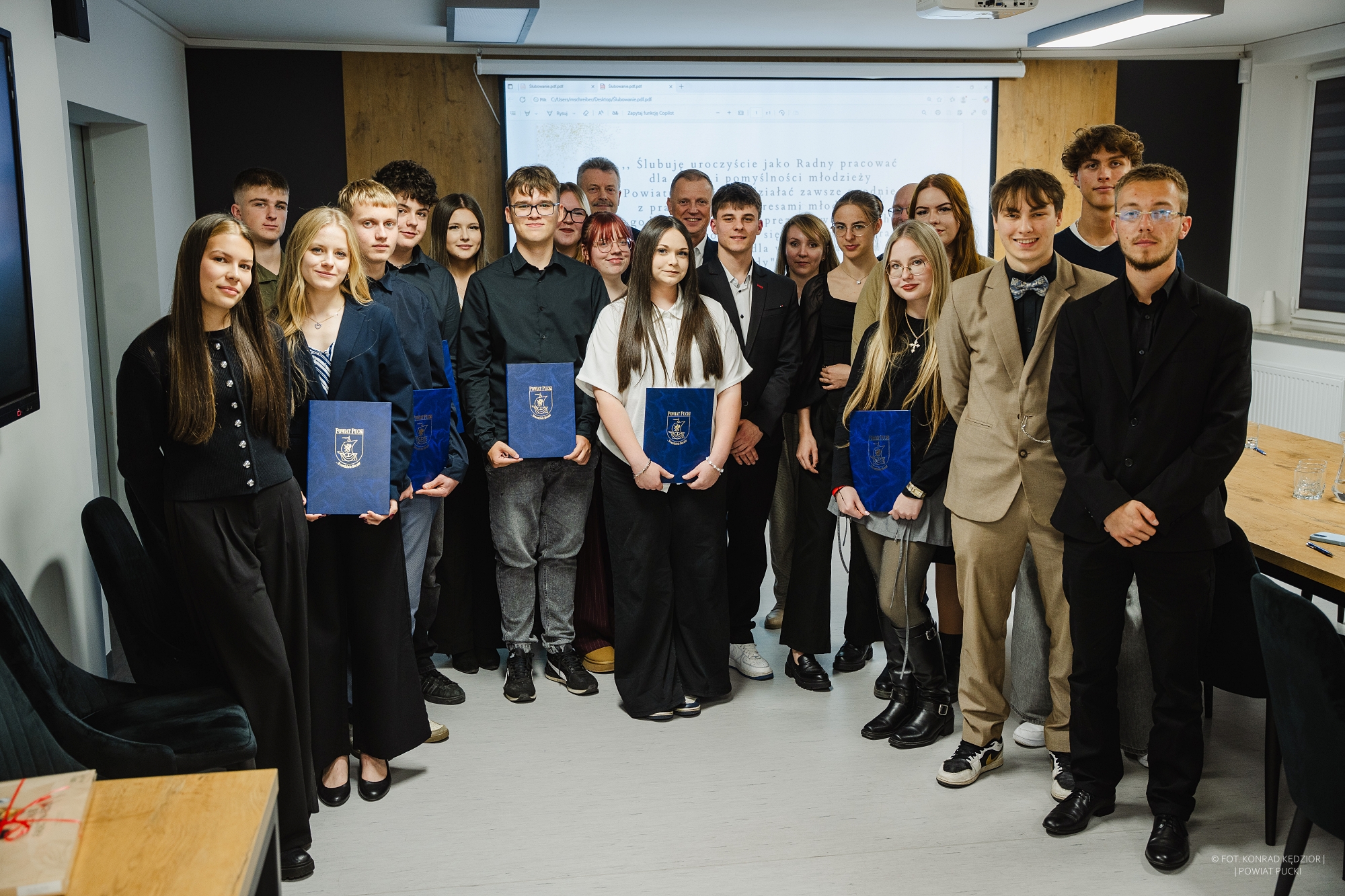 13 listopada w Starostwie Powiatowym w Pucku odbyła się pierwsza sesja Młodzieżowej Rady Powiatu Puckiego w roku szkolnym 2025/2026. Podczas obrad zaprzysiężono nowych radnych, wybranych w wyborach uzupełniających, przeprowadzonych w październiku br., w czterech powiatowych szkołach ponadpodstawowych. Młodzi radni otrzymali akty nominacyjne z rąk Starosty Puckiego Jarosława Białka oraz Przewodniczącego Rady Powiatu Puckiego Kazimierza Czernickiego